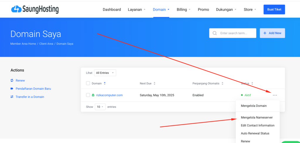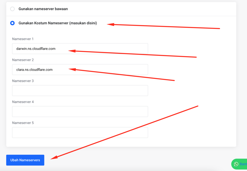 Ubah name server sesuai intruksi dari cloudflare dan simpan, tunggu dalam 1 x 24 jam
